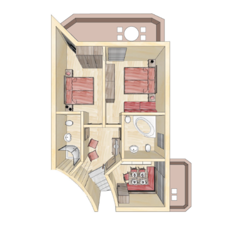 1 Badezimmer: Badewanne mit Duschwand, Bidet, Waschbecken, Toilette