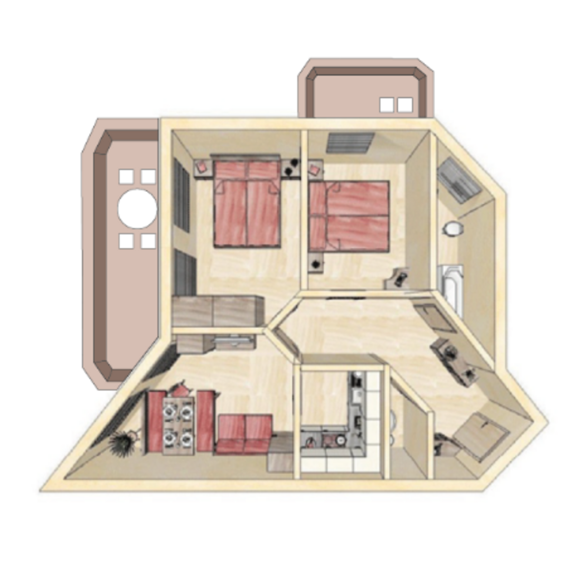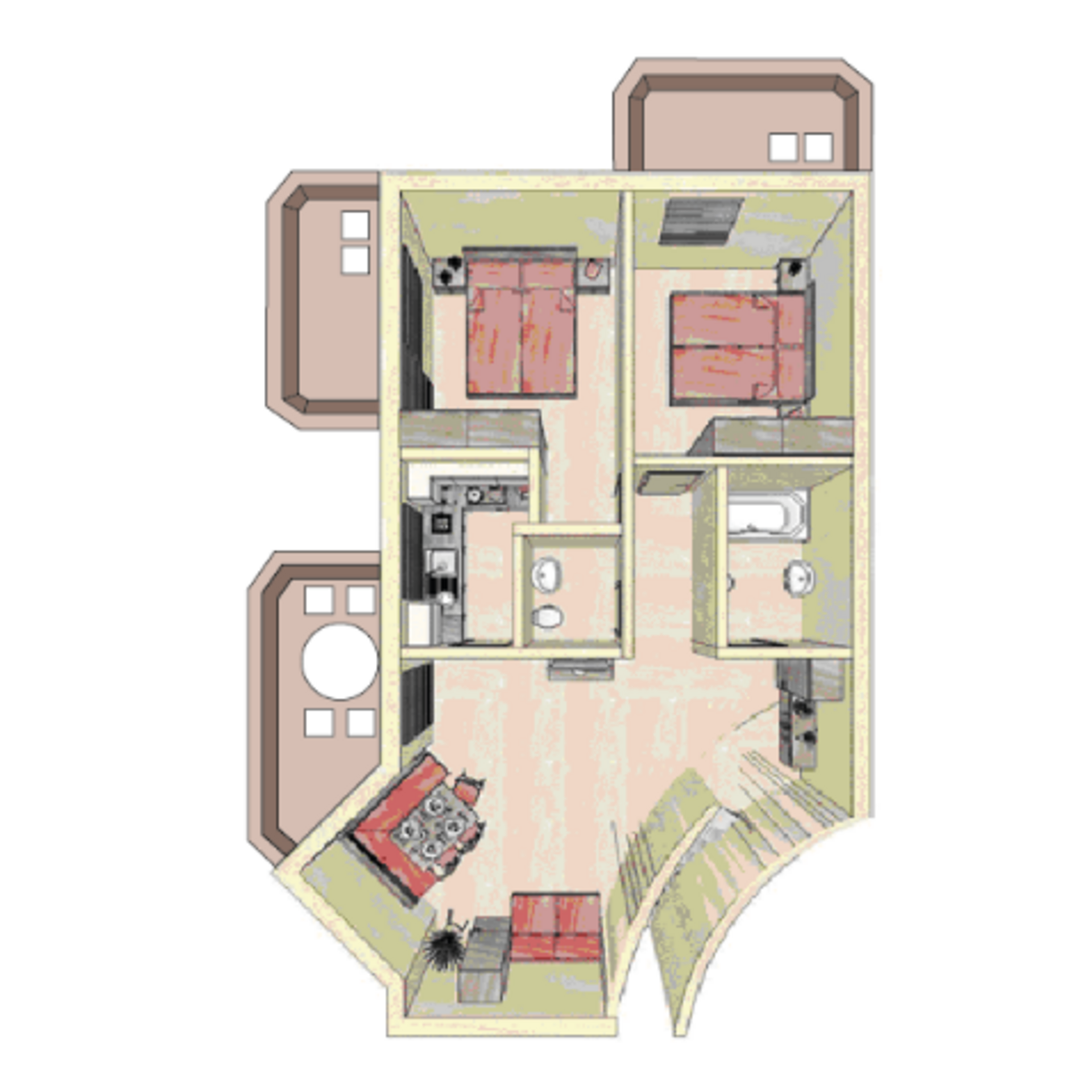 1 Badezimmer: Badewanne mit Duschwand, Bidet, Waschbecken, Toilette